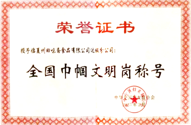 方大集團旗下臨夏回味齋食品有限公司達板分公司榮獲“全國巾幗文明崗”稱號